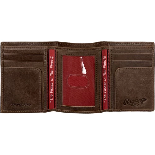 Steal looks when you pay the bill with the all-new Rawlings American Story Tri-Fold Wallet. The American Story tri-fold wallet is crafted with premium, genuine leather for superior quality and represents Rawlings’ rich heritage. In addition, the American Story wallets are equipped with multiple credit card slots and an interior cash pocket to keep your money and cards secure. Show off your style with the all-new Rawlings American Story Tri-Fold Wallet available at Bases Loaded: The Baseball and Softball Superstore.