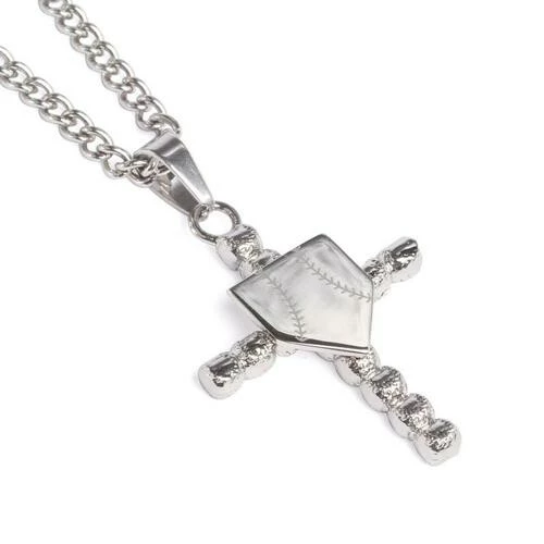 Stay faithful with the new HOF Jewelry Stainless Baseball Cross with Home Plate Pendant Necklace. This Stainless Baseball Cross with Home Plate Pendant Necklace is made of high quality stainless steel and includes a durable 26” stainless steel chain.