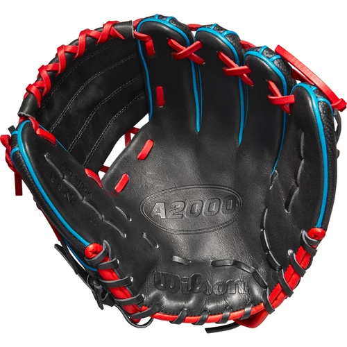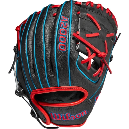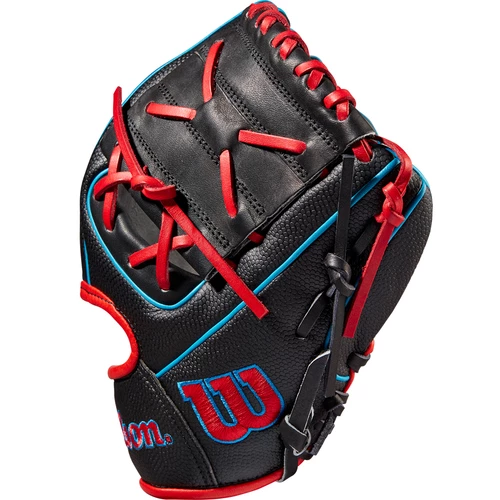 Flash the leather with the all-new Wilson A2000 PFX2SS Model 11” Infield Baseball Glove. Built with Pedroia Fit, the 2022 A2000 PFX2SS features a narrow wrist opening and shorter finger stalls to create a secure fit for younger players and infielders with smaller hands. The shorter 11″ pattern allows for high-speed transfers and maximum control. Designed with Black Pro Stock Leather with Red and Blue accents designed to catch attention, the Black SuperSkin reduces glove weight and improves durability. SuperSkin is a microfiber material that’s half the weight of Pro Stock Leather but twice as durable. Its moisture resistance extends the longevity of the glove and is easier to clean than traditional leather. Wilson’s Pro Stock Leather is durable enough to withstand years of usage but soft enough to allow for an easy break-in and unparalleled comfort. Flat Finger Binding gives players who prefer to play with a finger outside the glove greater comfort and control in the field. By reducing the amount of space between your finger and the back of the glove, you’ll experience less pain when making plays. The Comfort Pro Lining, featuring ProLux Leather, has a richer, softer feel that molds to your hand over time, pairing with Wilson’s Comfort Sleeve wrist binding for an amazing feel. Rolled Dual Welting is integrated into the liner of Wilson gloves, offering better support and helping your glove maintain its shape over time. Lastly, the Bold Logos strip away the distractions with eye-catching Wilson logos that steal the show. Hold down the infield with the all-new Wilson A2000 PFX2SS Model 11” Infield Baseball Glove available at Bases Loaded: The Baseball and Softball Superstore.