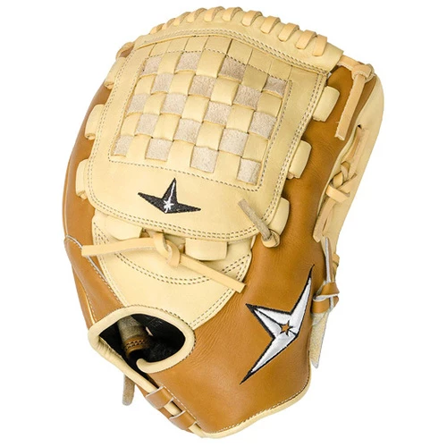 All-Star is a company known for their gloves and the new 12β Pro Ball Glove designed for fastpitch is a must own for anyone who wants to take their game to the next level. This glove is great for just about anywhere on the field and looks great with its saddle and cream colorway. The 3 FING3R design allows for a massive pocket yet remains comfy for any hand size. It dons a reinforced basket web and is made of high grade Maruhashi leather.