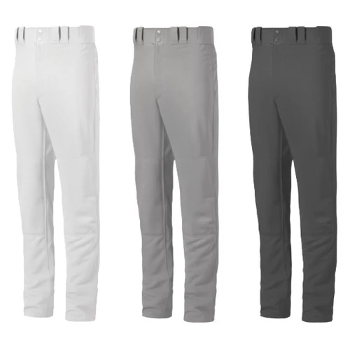 To play like a pro you got to look like a pro, and what better way to do that then to play in the most popular baseball pant out there, the Mizuno Premier Pro Adult Baseball Pant. Designed from the finest 100% polyester double knit material the Mizuno Premier Pro Adult Baseball Pant offers that professional look players crave. Designed with a hemmed bottom the Mizuno Premier Pro Adult Baseball Pant sits comfortably over your cleats for a clean long look. The Mizuno Premier Pro Adult Baseball Pant also features tunnel belt loops, a fly front with an extended two-snap closure, two set-in back pockets and double knee protection for added support while sliding.