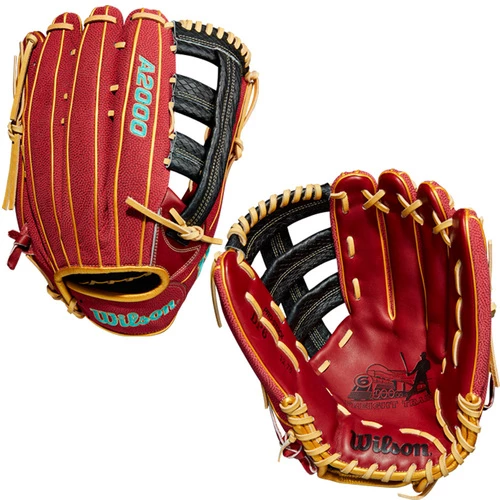 Roam the outfield like Arizona outfielder David Peralta with the all-new Wilson A2000 2021 April GOTM 12.75″ Outfield Baseball Glove David Peralta Model. This limited edition outfield glove was built by David himself and features his signature ‘Freight Train’ logo and #6 stamped on the palm. The shell back is constructed with Wilson’s patented Matte Scarlet SuperSkin, which is twice as strong as traditional Pro Stock Leather but half the weight, providing a lighter, stronger glove that’s easier to break in. The shell palm showcases Wilson’s Pro Stock Leather, renowned for its unmatched feel, rugged durability, and an ideal break-in. In addition, David chose a Single Post Web made with Black SnakeSkin Pro Stock Leather; the Single Post Web is an outfielder favorite for its pocket depth and its ability to channel the ball into the pocket more smoothly for flawless transfers. The Wilson A2000 April 2021 GOTM also features Wilson’s ComfortPro Fit with ProLux Leather liner for a richer, softer feel against your hand, while the Comfort Sleeve conceals the binding in the wrist for additional comfort. Show your range with the all-new Wilson A2000 2021 April GOTM 12.75″ Outfield Baseball Glove David Peralta Model available at Bases Loaded: The Baseball and Softball Superstore.