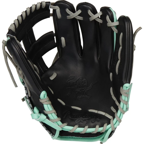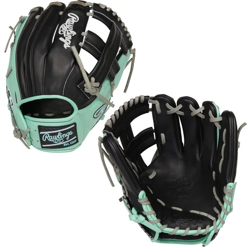 Make tough plays look routine in the all-new Rawlings ColorSync 5.0 Heart of the Hide 11.5” Infield Baseball Glove. This stylish Mint and Black 11.5” infield glove was meticulously handcrafted with ultra-premium steer-hide leather that delivers superior quality and performance on the field. Featuring a Single-Post Web that allows dirt to easily escape for flawless transfers, this limited edition Rawlings ColorSync 5.0 11.5″ infield glove is constructed in Rawlings NP-Pattern. Famous for its narrow, medium pocket that allows for lightning-fast ball-to-hand transfers. The semi-rare hand-sewn welting along the pinky and thumb provides a distinct look while creating a smoother surface inside the glove. The palm lining is designed with ultra-soft Deer Tanned Cowhide leather that delivers a soft feel against the palm of your hand. The Thermoformed wrist liner and padded thumb sleeve offer added comfort and stability. Make minty fresh plays in the all-new Rawlings ColorSync 5.0 Heart of the Hide 11.5” Infield Baseball Glove available at Bases Loaded: The Baseball and Softball Superstore.