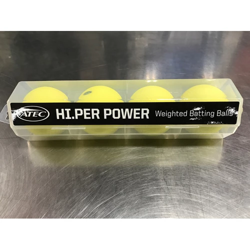 Work on hitting through the ball and gain more power in your swing with the ATEC Hi.Per Power Ball. These new Hi.Per Power Balls are regulation size but weight 2.5x more than a traditional baseball forcing you to follow all the way through your swing to hit it with any type of power. This training ball is great for pre-game warm ups and has a max flight of about 50ft. Each ATEC Hi.Per Power Ball is made with XDC (Xtra Durable Composite) to eliminate cracking and tearing.